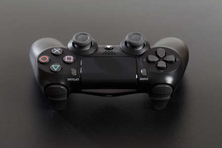 Russia, Moscow, October 02, 2019: Joystick for Sony Playstation on dark background