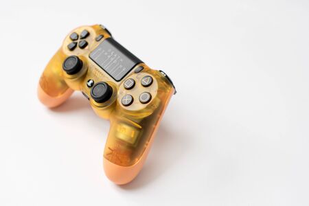 Saint-Petersburg-18 August, 2020: Joystick for game console on black background. Game console with a joystick. Home video game console.