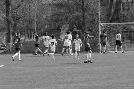 Orenburg, Russia - 1 June 2016: The boys play football in the preliminary games football festival Lokobol-2016.