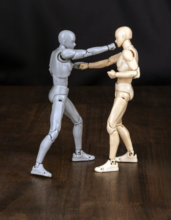 Two men fighting in confrontation isolated on white background