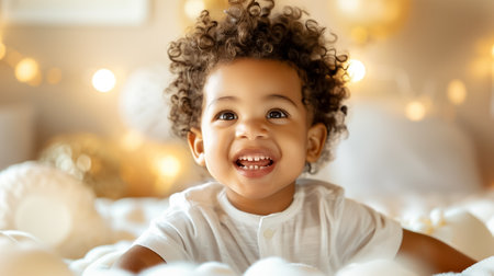 Radiant baby face with a heartwarming smile radiating joy and wonder in a young child portrait