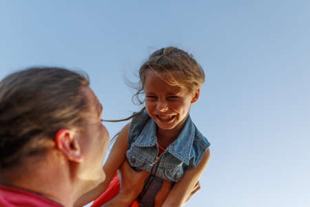 Happy father and child daughter spending time outdoors. Fathers Day