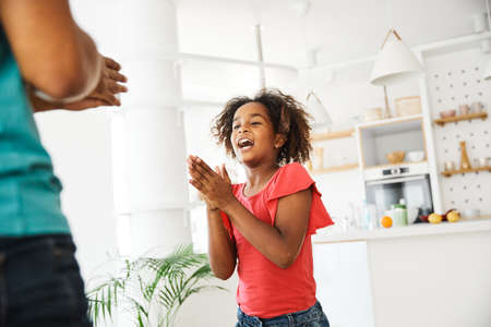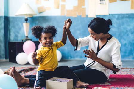 African american mother playing with adorable little african american girl at home.Love of black family concept