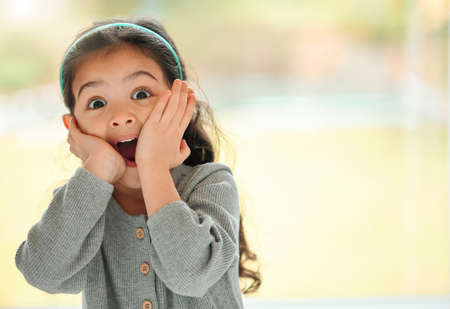 Im super excited. Shot of an adorable little girl at home.