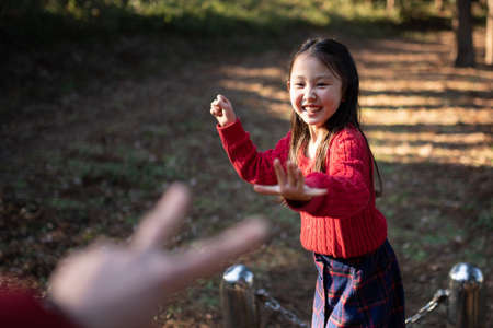 Parents and children playing in the forest park