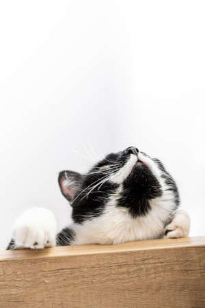 Portrait of a cat looking up. Place for text