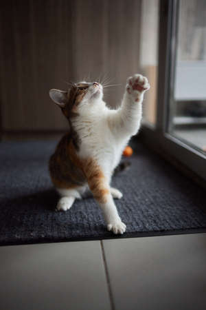 Cute little Tricolor kitten playing
