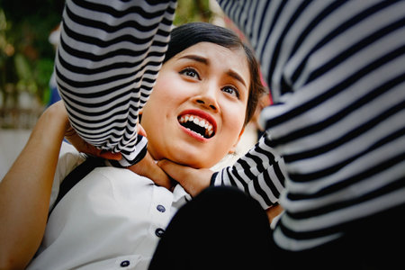 Crime concept : Criminals attack assault women with strangles intended for sexual harassment. , And women ask for life in fear.