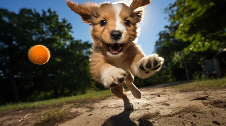 A snapshot of a cute furry friend enjoying a game. Generative AI