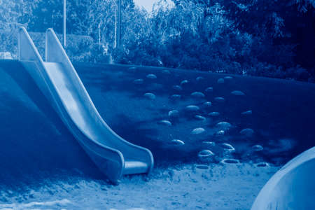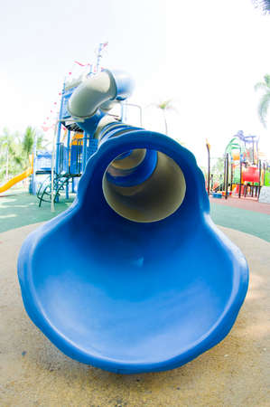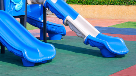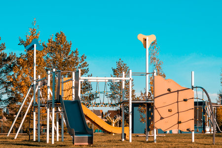 Children kid playground for leisure and recreation activity with toy and slider leftover in the park in childhood color style