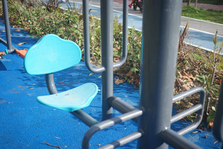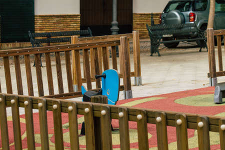 Cyberjaya, Malaysia - November 06, 2020: An abandoned seesaw in a playground. Playgrounds are blocked for use in the Corona Lock downs. Covid-19 also prohibits children from playing outdoors.
