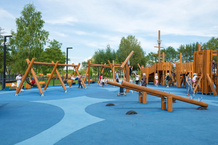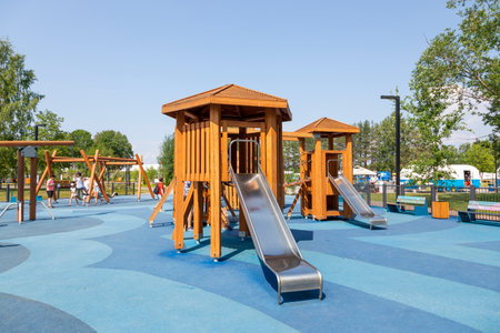 St. Petersburg, Russia - July 16, 2021: Children's playground on the territory of the Island of Forts in Kronstadt, St. Petersburg Petersburg