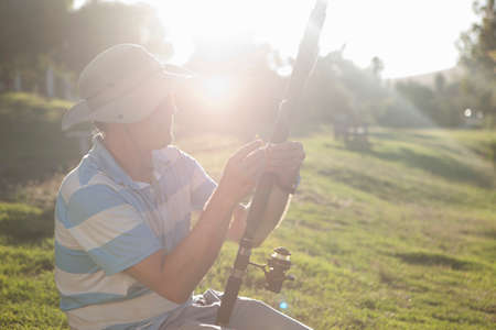 Mature man holding fishing rod