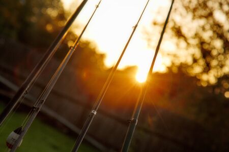Fishing tackle at sunset, Lake Seliger.