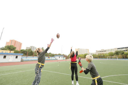 MINSK, BELARUS - 22 July, 2022: girls train to play flag football