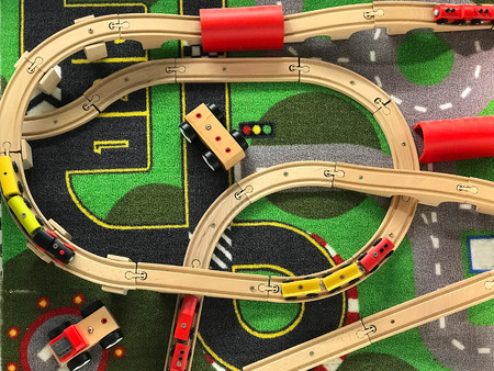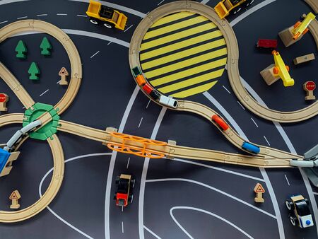 pack of colorful child kid’s education toys constructor train pattern background on the bright color background close up. Childhood education play infancy children baby concept
