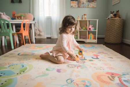 AI Generative Children's playroom, colorful toys lying on white carpet in the bedroom