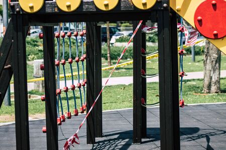 View of a playground without any children due to the epidemic of Coronavirus in the city of Limassol