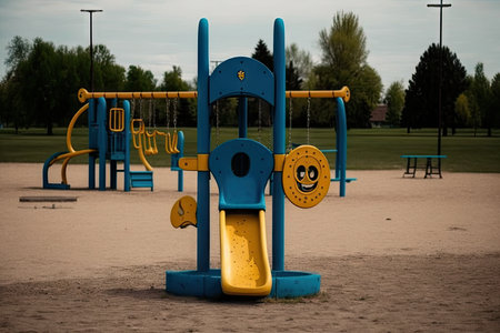 one empty playground, with different kinds of equipment visible, created with generative ai