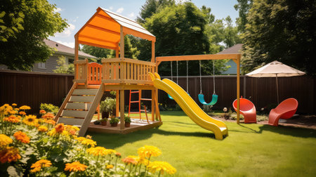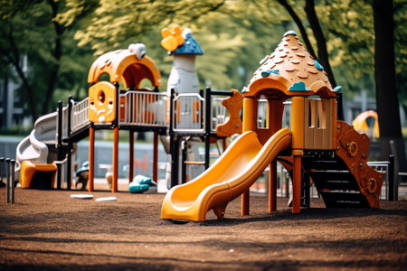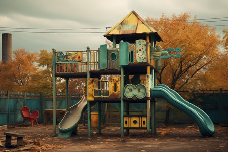 A playground with a slide and swings in the park, AI