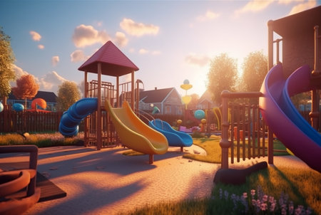 Children's recreation park with beautiful sunrise in the morning. generative ai