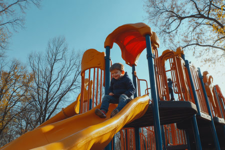 Children delight in a sunny day at the playground with colorful slides and climbing structures