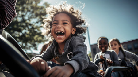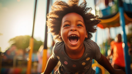 A vibrant playground bursts with the infectious laughter of playing children This nostalgic image captures carefree joy, evoking cherished childhood memories of slides, swings, and colorful structures Their happiness is palpable, a perfect picture of pure fun and freedom Share this scene to spread the joy of childhood AI Generative