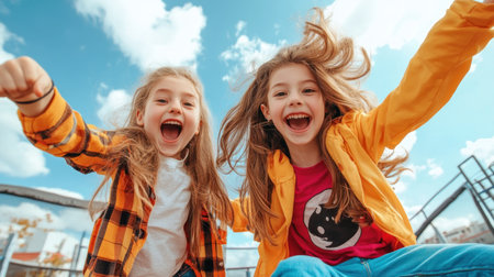 Experience pure joy with kids mid-air on a trampoline! Dynamic action and vibrant happiness explode as children jump in bright surroundings These high-energy, playful moments showcase the delight of active fun Their enthusiastic expressions and mid-air poses highlight childhood freedom Perfect for advertisements and family content, this trampoline adventure embodies AI Generative