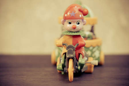 Vintage image of Clown toy riding a bicycle