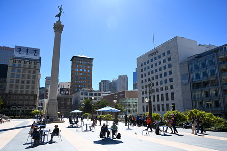 San Francisco, CA, USA - July 25, 2023: The Union Square, most popular Shopping Districts in San Francisco.
