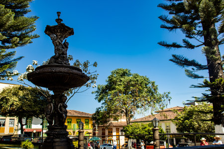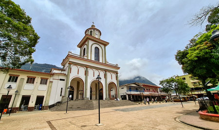 AGUADAS, COLOMBIA - JANUARY 15, 2024: Central square of the heritage town of Aguadas located at the Caldas department in Colombia.