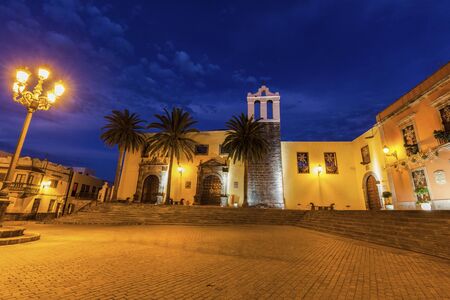 View on a central square with old church in Los Gigantes village on a twilight. Tenerife island, Spain