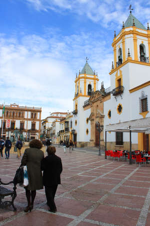 Ronda, Spain - August 18, 2018: Church of Socorro with many people around