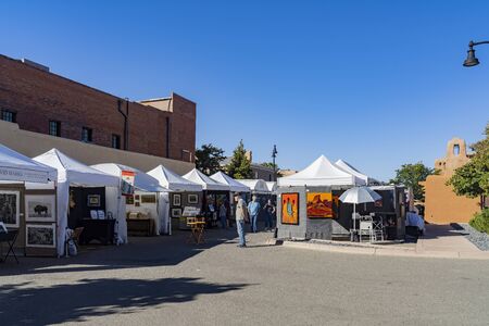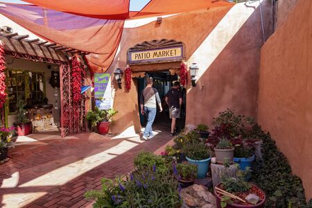 Albuquerque, OCT 5: Exterior view of some stores in the Old Town Plaza on OCT 5, 2019 at Albuquerque, New Mexico