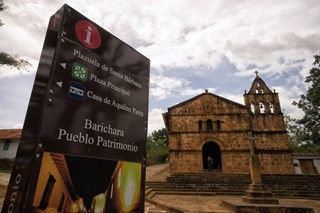 July 22, 2017 Barichara, Colombia: an information sign in the front of a chapel in the popular tourist town