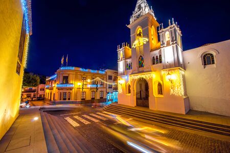 Los Silos, Tenerife island, Spain - December 30, 2015: Los Silos village on the northwestern pat of Tenerife island illuminated and decorated on the evening before New Year celebration in Spain