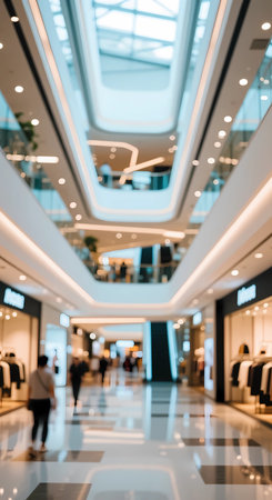 Blurred background of a modern shopping mall. Abstract motion blurred outlet. Sale concept