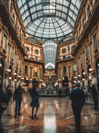 Milan Italy January 21 2019 Glass dome of Galleria Vittorio Emanuele II shopping gallery Milan Italy : Generative AI