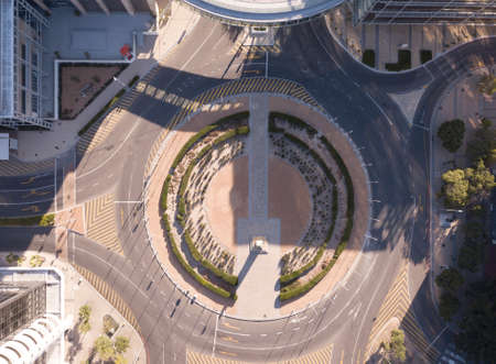 Aerial view of empty streets in in a city during Corona virus lockdown