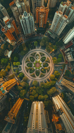 An aerial photo taken from the top of a drone while over a Global City featuring development buildings