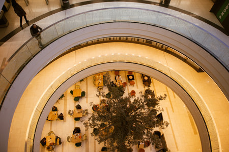 DUBAI, UAE - MARCH 2, 2020: Mall of the Emirates is a shopping mall before christmas. Beautiful and well decorated shopping with its central elevator called.