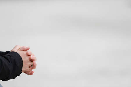 Sanctuary of Fatima. Worshipper praying. Close up on hands. Portugal.