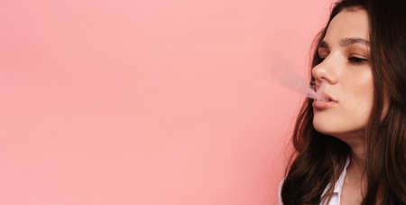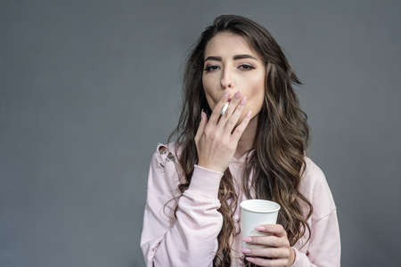 Addiction and dependence. Smoking girl. Cigarette nicotine addiction. Women with smoke addiction.