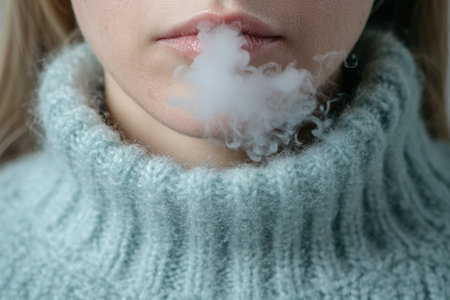 Close-up of mouth and nose with heavy breathing, steam visible in the cold air generative ai