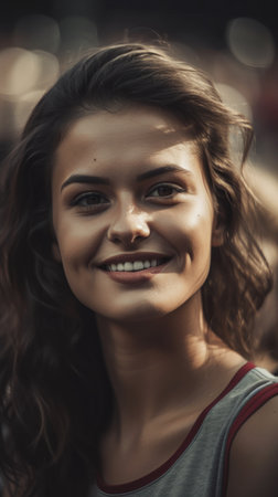 Portrait of a beautiful young woman smiling and looking at camera., generative ai