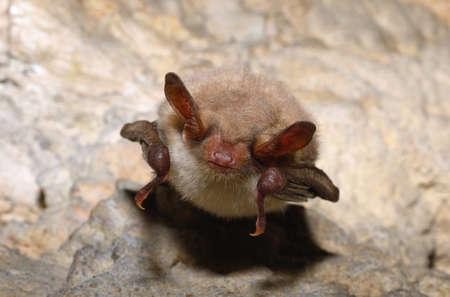 Lesser horseshoe bat hanging in a cave (Rhinolophus hipposideros)