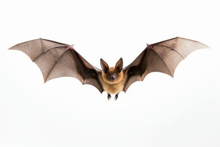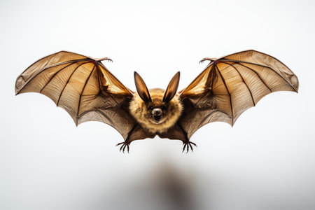 Bat with spread wings, a hunting animal isolated on white background.