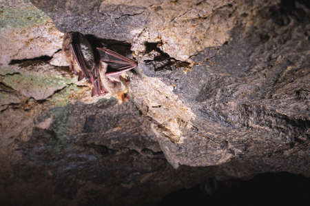 Bat sleeps in the cave hanging on the ceiling