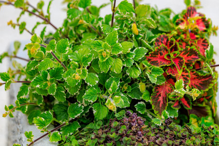 scenic view of coleus plants also called Coleus blumei or Plectranthus scutellarioides