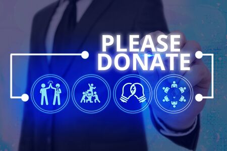 Handwriting text Please Donate. Conceptual photo Supply Furnish Hand out Contribute Grant Aid to Charity